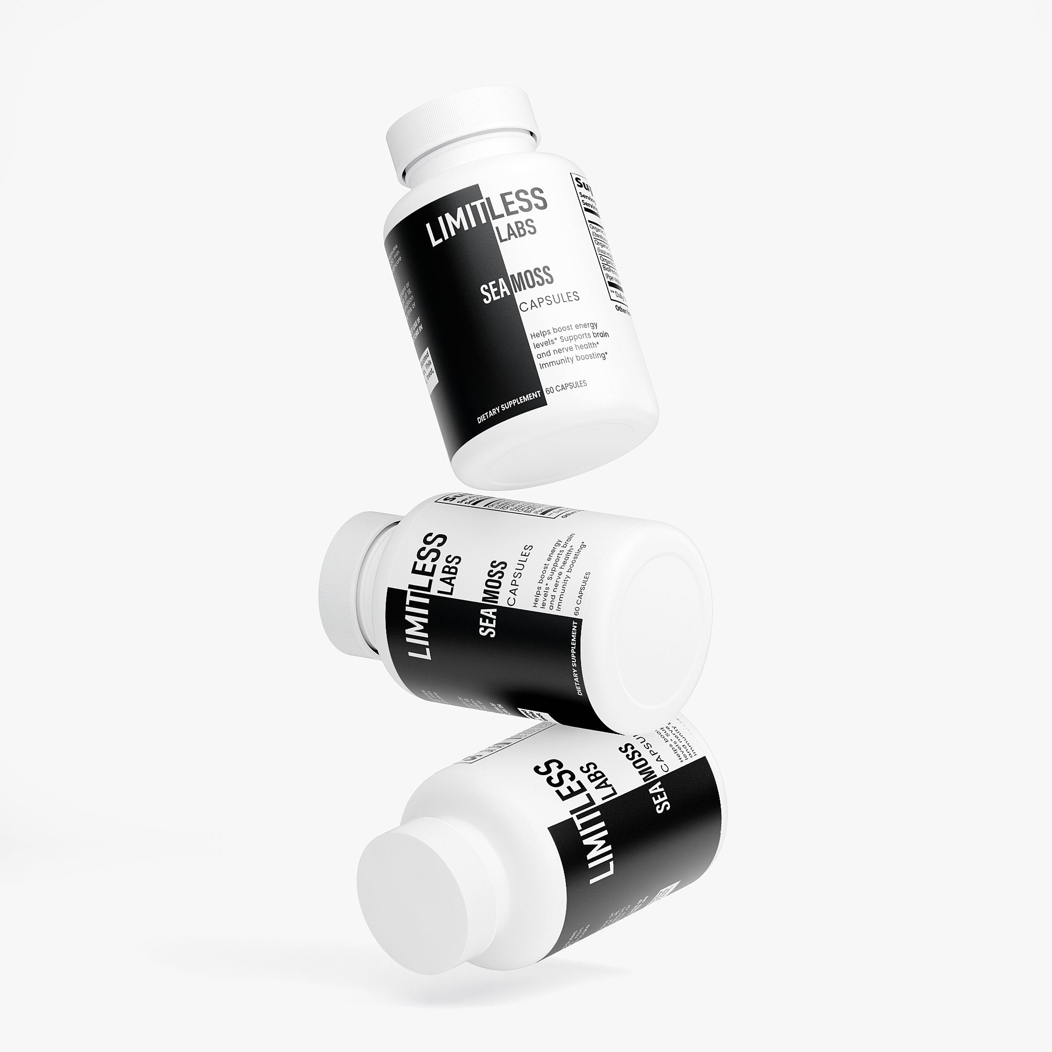 Ingredients: Organic Irish Moss, Organic Bladderwrack, Organic Burdock, BioPerine®, Pullulan Capsules.
